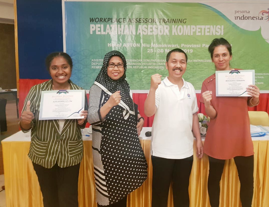 MANOKWARI, PAPUAKITA.COM—Pelatihan Asesor Kompetensi yang diselenggarakan oleh Kementrian Pariwisata melalui Asisten Deputi Pengembangan SDM Pariwisata dan Hubungan Antar Lembaga, selama 6 hari (25 – 30 Maret 2019), resmi ditutup.