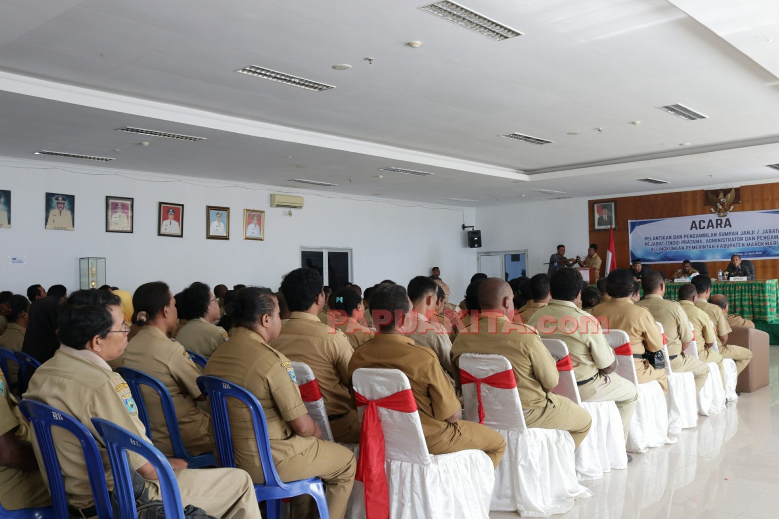 MANOKWARI, PAPUAKITA.COM—Sebanyak 72 pejabat eselon di lingkungan Pemerintah Kabupaten Manokwari resmi dilantik. Pelantikan dan pengambilan sumpah dan janji jabatan dipimpin langsung Bupati Demas Paulus Mandacan, bertempat di Gedung Sasana Karya Kantor, Selasa (23/4/2019).