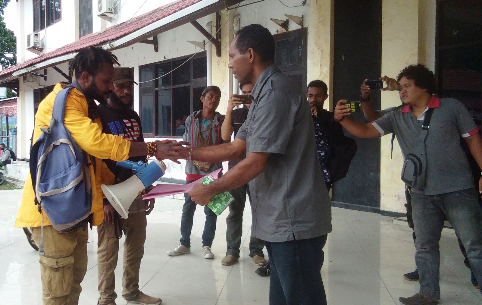 “Sumbangsi dana otsus dan BOS dibidang pendidikan, kami orang asli Papua tidak dapat. Apakah ini diprioritaskan bagi anak anak pejabat. Pembangunan pendidikan dari kota ke kampung atau kampung ke kota, guru menumpuk di kota. Kenapa?,” teriak salah seorang orator lainnya.