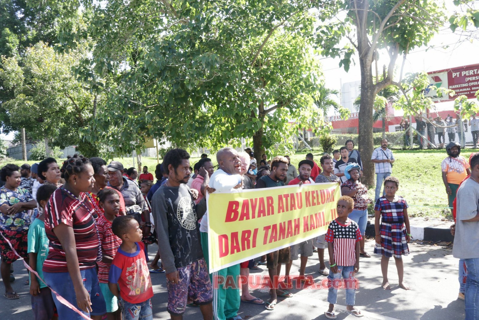 Dalam aksi massa yang dilakukan masyarakat adat suku Arfak yang mengklaim sebagai pemilik hak ulat atas tanah Terminal BBM Manokwari, menuntut penyelesaian ganti rugi sebesar Rp529 miliar 890 juta.