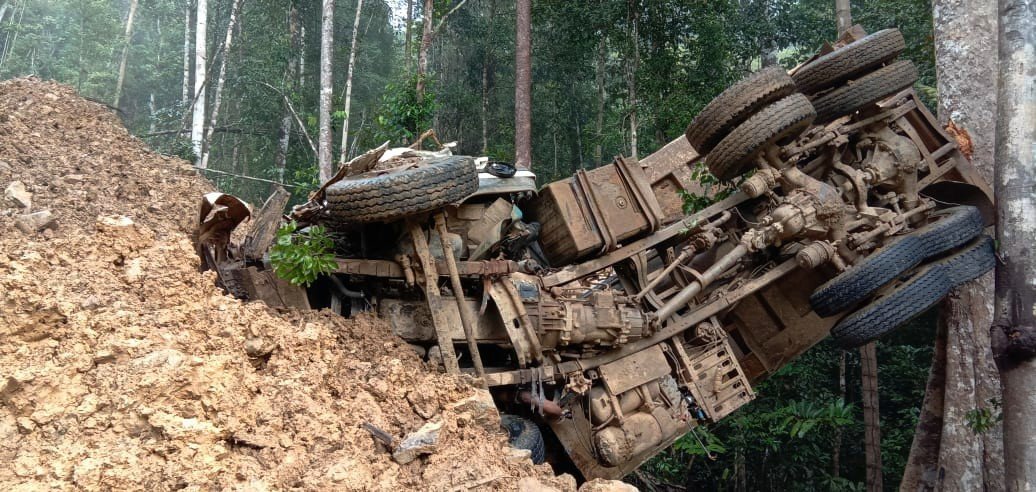 “Kejadian ini diduga kelalaian sopir yang mengendarai dumptruck serta kondisi medan jalan yang licin mengakibatkan kendaraan tersebut terpeleset,” sebut Mathias Krey.