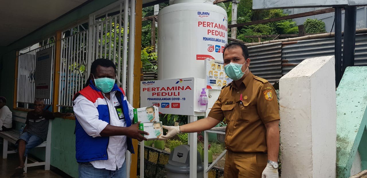 Bantuan berupa tandon air cuci tangan ini diserahkan langsung oleh Unit Manager Communication, Relations dan CSR MOR VIII PT Pertamina (Persero) Edi Mangun dan diterima Kepala Puskesmas Imbi Kota Jayapura, dr. Johanes Raja Pikir Siregar.