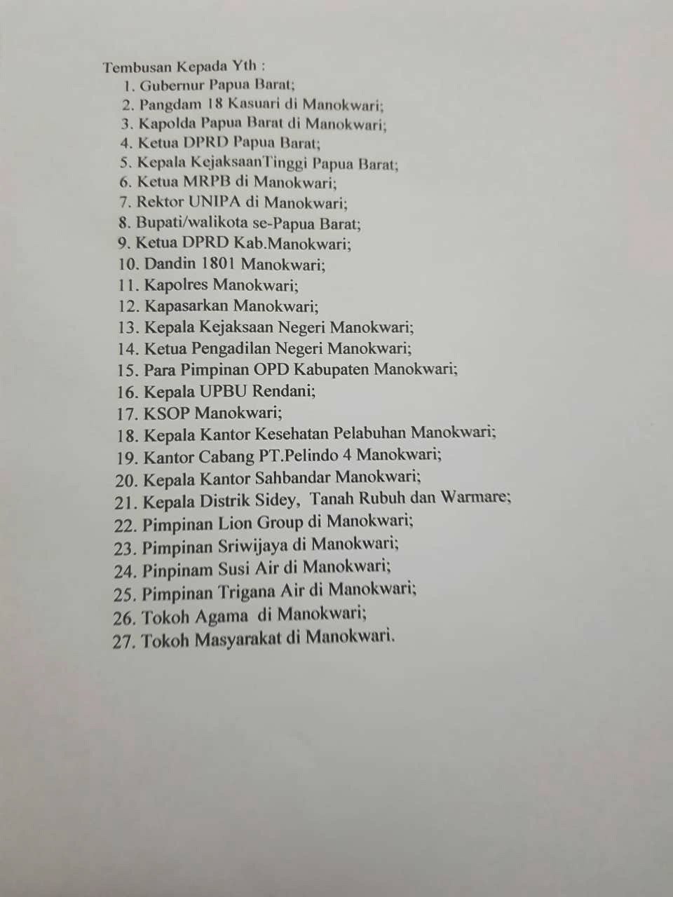 “Masyarakat Manokwari diharapkan mendukung instruksi bupati ini, hanya 14 hari saja,” imbau Sekda Makatita.