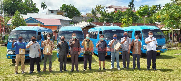 MANOKWARI, PAPUAKITA.com—Pemerintah Kabupaten Manokwari menyerahkan 4 unit mini bus kepada Badan Usaha Desa (BUMDes) di empat distrik, yaitu distrik Prafi, Masni, Sidey, dan ditrik Manokwari Utara. Penyerahan mini bus ini berlangsung di Kantor Dinas Perhubungan, Kelautan dan Perikanan, Kamis (14/5/2020).
