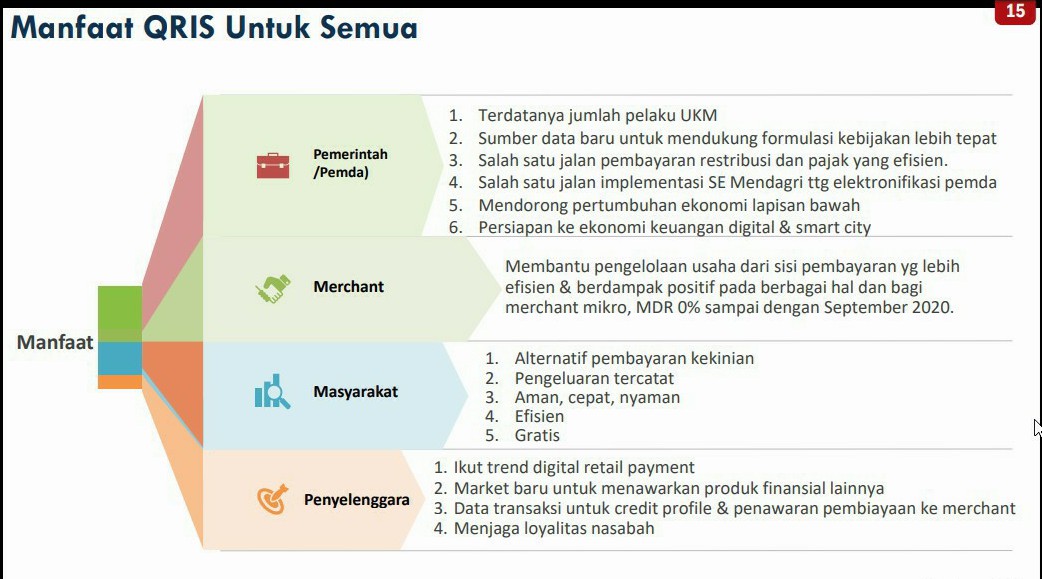 “QRIS merupakan salah satu alternatif di tengah pandemik Covid-19. Manfaatnya betul-betul dirasakan pada saat pandem ini berlangsung. Ini satu solusi lah buat masyarakat kita, makanya Bank Indonesia kembali lagi mulai semacam kampanye untuk mendorong pembayaran menggunakan QRIS,” ucap Donny Heatubun.