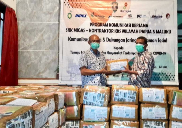 MANOKWARI, PAPUAKITA.com—Satuan Kerja Khusus (SKK) Migas bersama kontraktornya Inpex Masela Ltd., Bp Indonesia, Petrogas Basin Ltd. Pertamina EP Aset 4 dan Genting Oil Kasuari Ltd yang bekerja di wilayah Papua dan Maluku (Pamalu), Senin (20/7/2020), melaksanakan kegiatan Komunikasi Bersama dan dukungan Jaring Pengaman Sosial (JPS) di Kota Ambon.