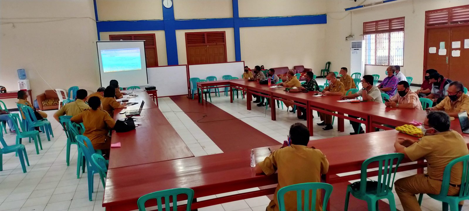 Rapat dalam rangka pembobotan Raperbup percepatan pencegahan dan penanganan Covid-19 ini dihadiri perwakilan OPD, Satpol PP, Polri, dan TNI. (ARF)