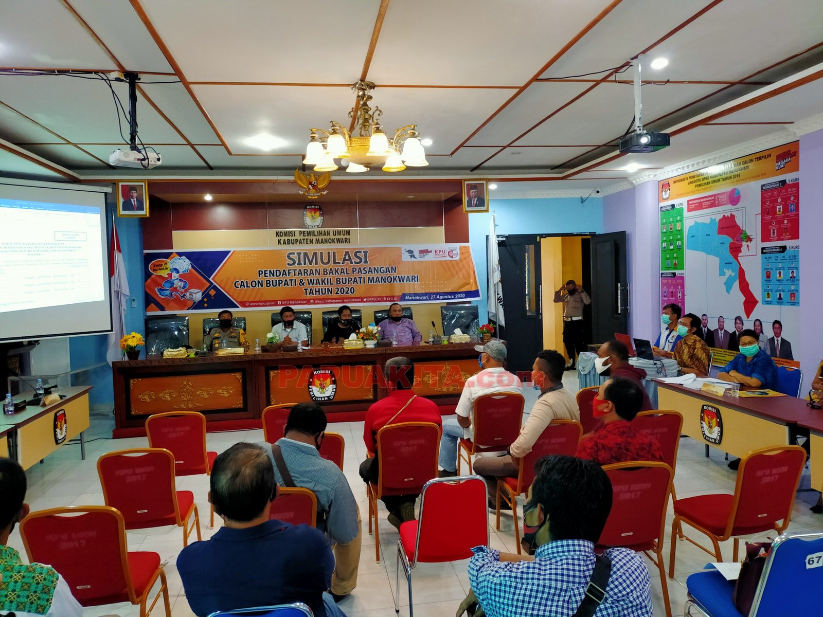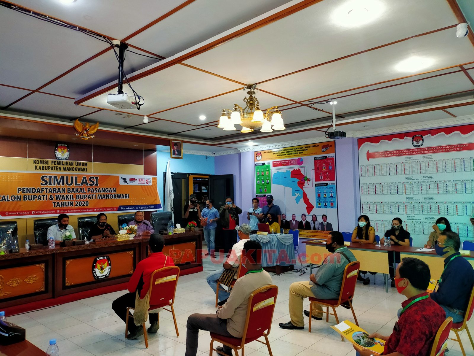 MANOKWARI, PAPUAKITA.com—Kelengkapan syarat calon dan syarat pencalonan bakal pasangan kepala daerah dan wakil kepala daerah menjadi penekanan khusus KPU Kabupaten Manokwari, saat simulasi pendaftaran bakal calon pasangan bupati dan wakil bupati Manokwari tahun 2020, Kamis (27/8/2020.