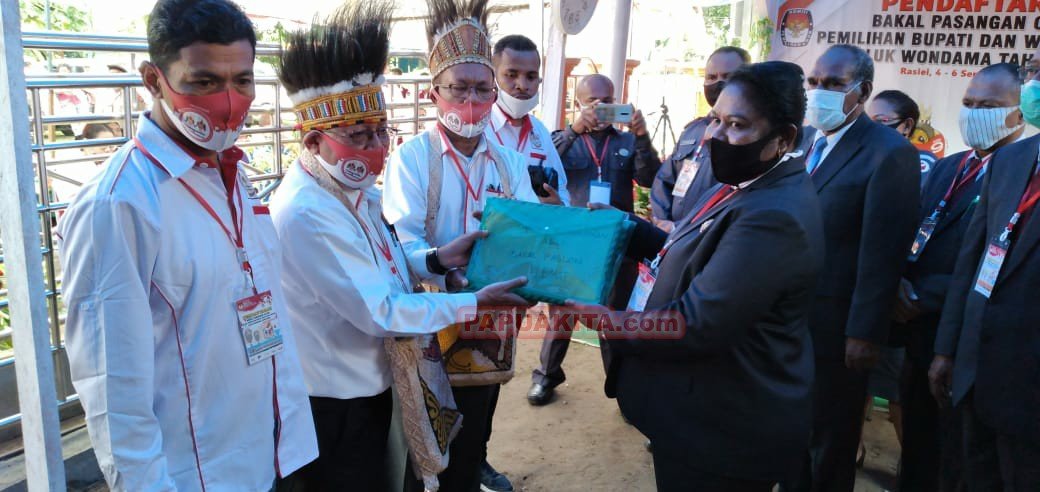 Pengembalian berkas pencalonan para bakal paslon ini dilakukan pada hari pertama pendaftaran bakal calon Bupati dan Wakil Bupati Teluk Wondama periode 2020-2025, Jumat (4/9/2020). Pendaftaran bakal paslon kepala daerah dan wakil kepala daerah ini dibuka selama 3 hari, yakni tanggal 4-6 September 2020.