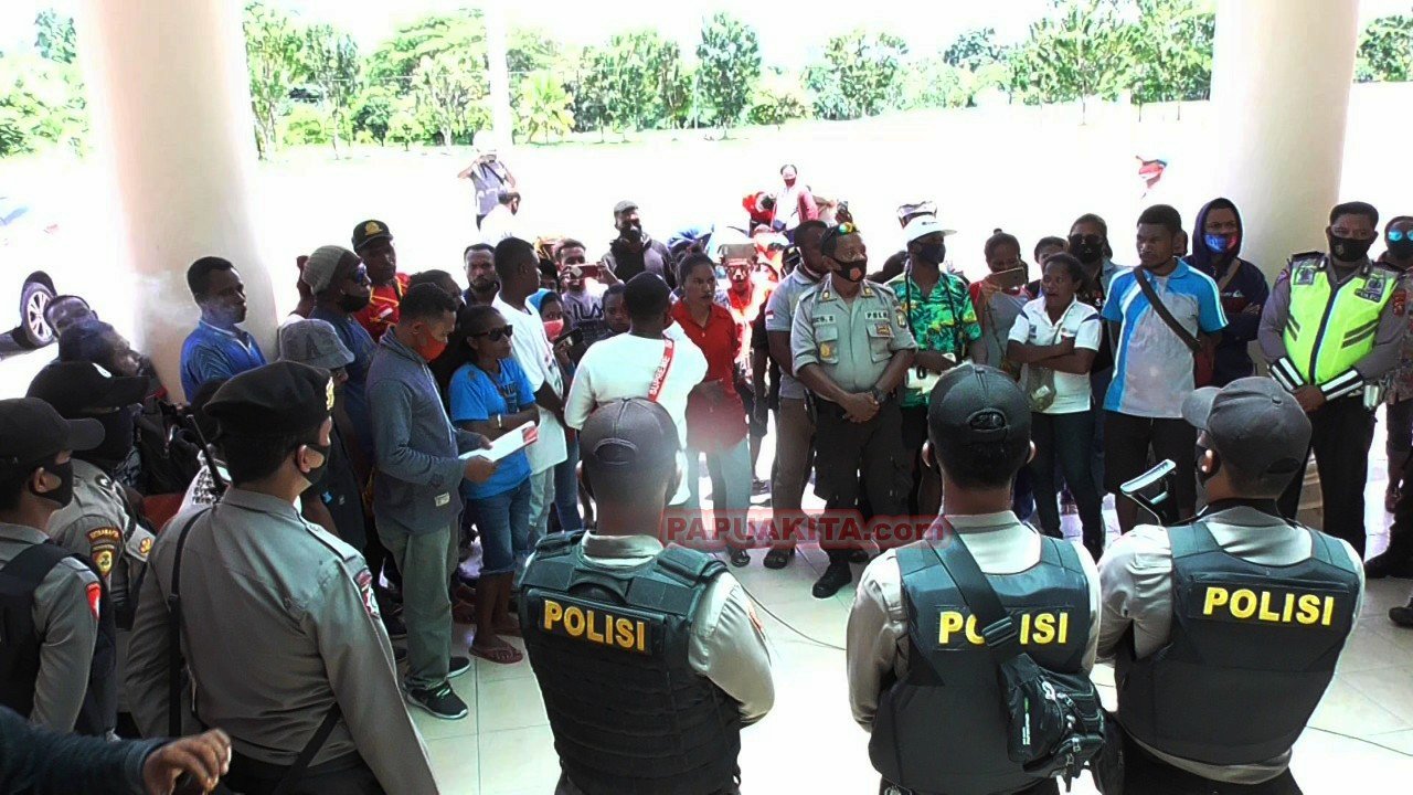 Aksi demonstrasi ini dilakukan oleh tenaga honorer dan pencaker yang tak lolos seleksi CPNS formasi 2018 di lingkungan Pemkab Teluk Wondama, demonstrasi berlangsung di kompleks perkantoran bupati kabupaten Teluk Wondama di Rasiei, Selasa 929/9/2020).