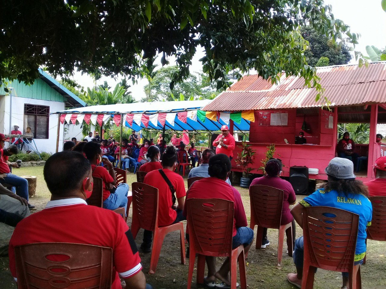 TELUK WONDAMA, PAPUAKITA.com—Kandidat Bupati dan Wakil Bupati Elisa Auparay-Ferry Auparay bertemu dengan warga Kelurahan Wasior dan Kampung Moru, Jumat (2/10/2020).