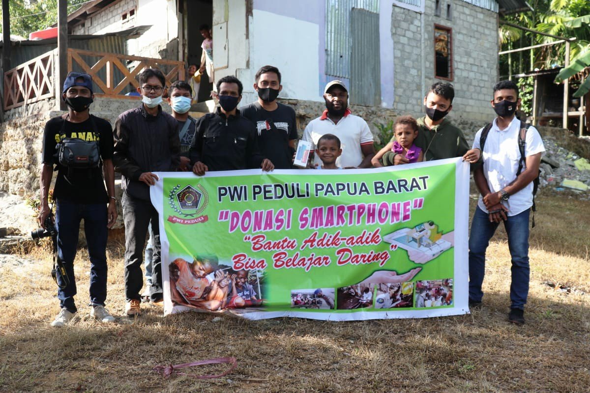 MANOKWARI, PAPUAKITA.com—Persatuan wartawan Indonesia (PWI) Peduli- Papua Barat, fasilitasi penyaluran 3 buah smartphone kepada pelajar yang tergolong kurang mampu, Rabu (21/10/2020). Penyaluran smartphone yang dihimpun melalui donasi, ini dilakukan sebagai upaya mendorong pelajar agar terus bisa mengikuti kegiatan pembelajaran yang digelar secara daring atau online.