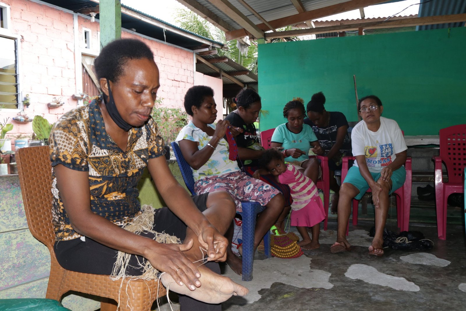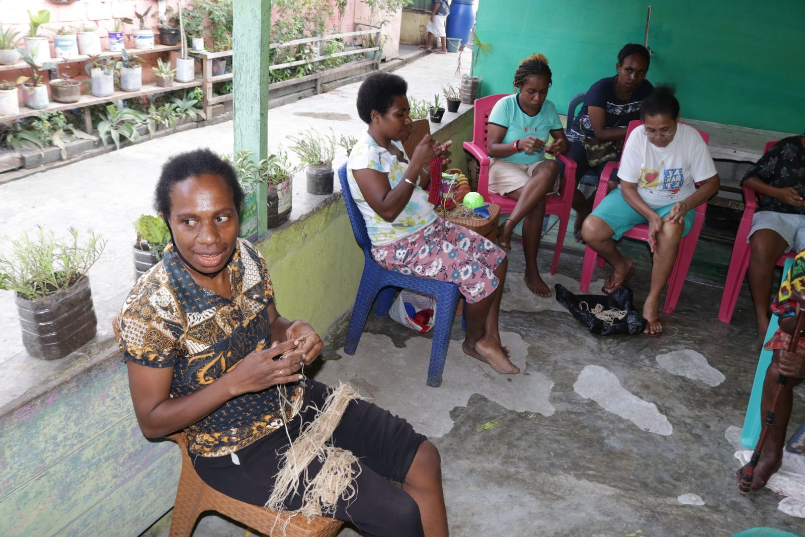 Ketua Kelompok Ganemo Manokwari, Yulita Yeimo. Kelompok Pengrajin noken ini berada di Jalan Trikora, Kelurahan Wosi, Distrik Manokwari Barat, Kabupaten Manokwari, Papua Barat. Home base kelompok Ganemo jaraknya kurang dari 1 kilometer dekat ke areal operasi Fuel Terminal (FT) Manokwari. Dibentuk pada sejak 2018 melalui program CSR PT Pertamina Persero. Foto : ARF