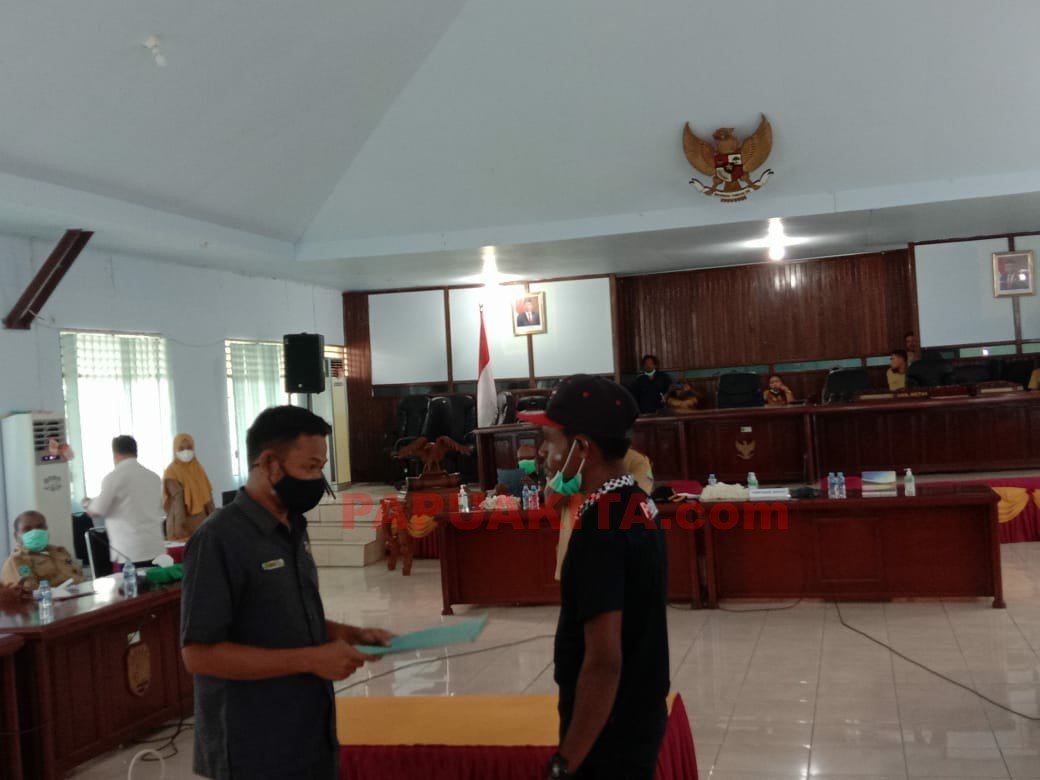 Usai menggelar aksi di kantor BKSDM, massa aksi kemudian beranjak menuju ke kantor DPRD. Untuk melakukan aksi serupa. Di kantor rakyat ini, massa aksi diterima oleh Ketua DPRD Isran Lie.