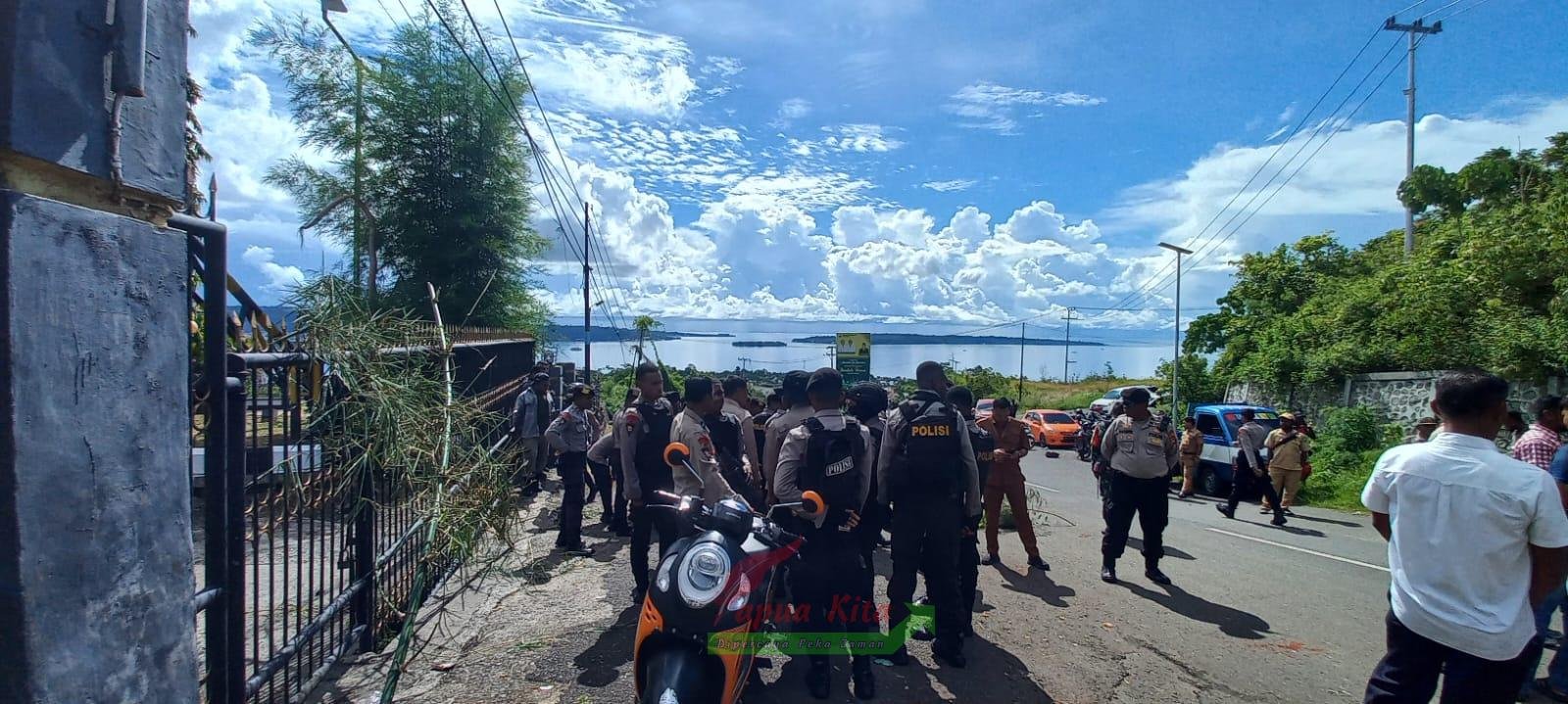 Aksi ini mendapat respon dari Satuan Polisi Pamong Praja (Sat. Pol PP). Ketua Satpol PP Yusuf Kayukaitui mencoba berdialog dengan massa. Alih-alih meminta segel kantor dibuka, kehadiran Yusuf justru ditolak. Yusuf sempat bersitegang dengan massa.