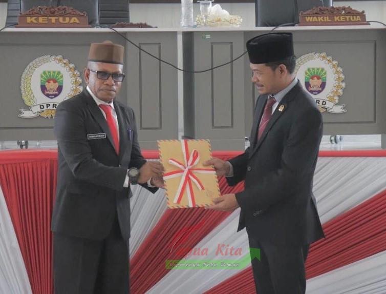 Penyerahan rancangan anggaran ini, berlangsung dalam rapat paripurna DPRD Kaimana yang dipimpin Wakil Ketua Jaquilina Claudia dan didampingi Wakil Ketua Kasir Sanggei, serta dihadiri Wakil Bupati\ Hasbulla Furuada.