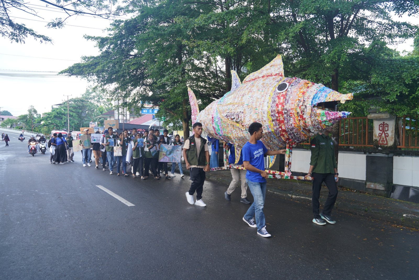 Monster plastik menjadi simbol ancaman sampah plastik sekali pakai. Monster tersebut akan akan diarak di jalan-jalan yang menjadi jantung 5 kota tersebut. Ini bertujuan untuk memberikan edukasi kepada masyarakat tentang bahaya sampah plastik. (*/PK-01)
