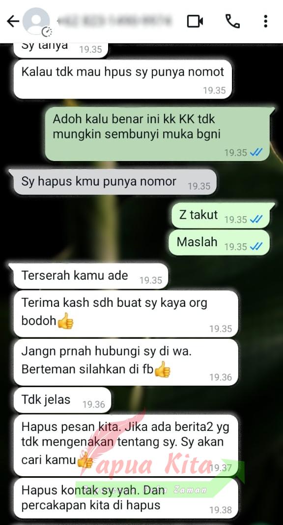 Terpisah, Ibu Sarwom salah seorang yang mengaku sempat dihubungi oleh pihak yang mencatut nama Ketua DPRPB, Orgenes Wonggor. Ia mengatakan, pihak tersebut mencoba melakukan aksi pornografi.