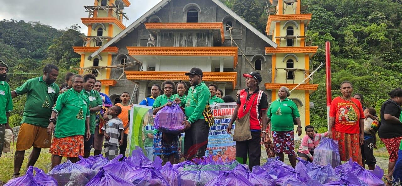 PEGAF, PAPUAKITA.com—Sebanyak 13 jemaat di wilayah Majelis Daerah (MD) Mirye Mbenti dan MD Minyambouw menerima bingkisan bahan makanan, yang terdiri atas beras, minyak goreng, gula, dan beberapa bahan lainnya.