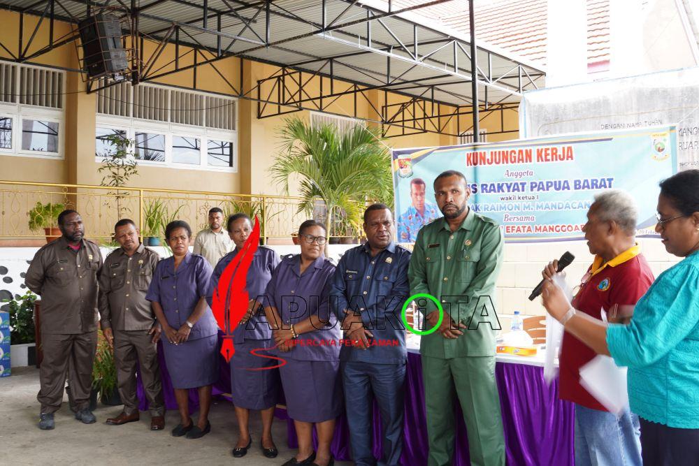 Kemudian, Irma Selfiana Nuham selaku Ketua Pokja Perempuan, Esterlina Paulina Rumfabe, dan Yuliana Kawey, serta sejumlah staf Sekretariat MRPB. Rombongan diterima oleh Plh. Jemaat Efata Manggoapi, Pdt. Hena Helena Korwa.