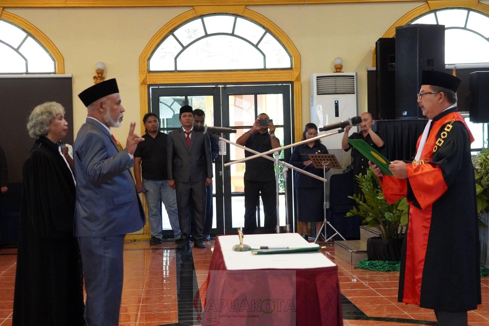 Pengresmian pengucapan sumpah janji dan pelantikan Petrus Makbon dipandu langsung oleh Ketua Pengadilan Tinggi Papua Barat Dr. Budi Santoso, S.H, M.H, berlangsung dalam rapat paripurna istimewa DPRPB masa sidang 1 tahun 2025, Kamis (6/3/2025).