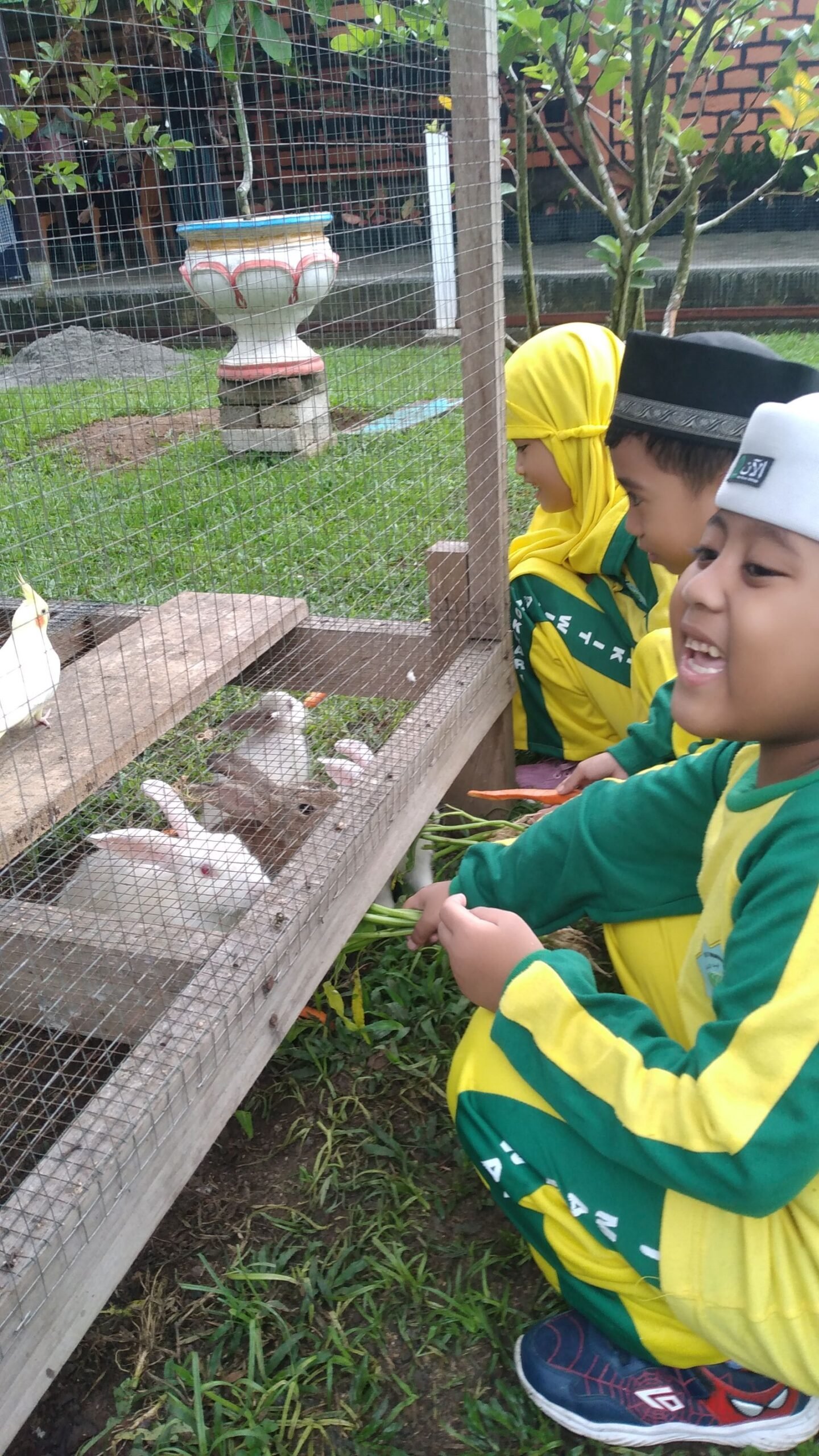 Dalam kesempatan tersebut, peserta didik nampak sangat antusias berinteraksi dengan kelinci, seperti memberikan makan, menyentuh kelinci, menyebutkan warga dan jumlah kelinci yang ada di setiap kandang.