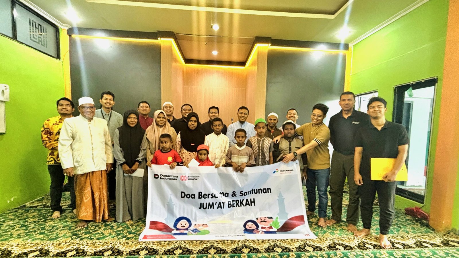 Adapun santunan diberikan kepada Yayasan Firdaus Asso dan Panti Asuhan Pelangi yang ada di Kota Jayapura. turut hadir dalam kegiatan ini, Executive General Manager Pertamina Patra Niaga Regional Papua Maluku beserta tim manajemen, Pengurus Badan Dakwah Islam (BDI) Regional Papua Maluku, Pengurus Bakorumkris Papua Maluku, Perwira Pertamina dan Mitra Kerja Pertamina.