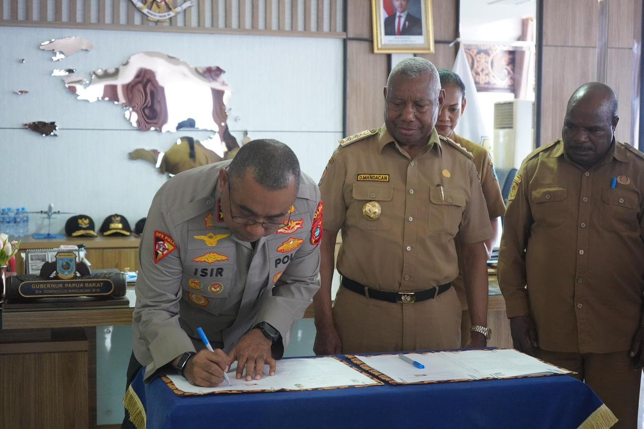 Proses penandatanganan dilakukan di Kantor Gubernur Provinsi Papua Barat, Selasa (7/10/2025), antara Kapolda Papua Barat Irjen Pol. Johnny Eddizon Isir dan Gubernur Papua Barat Dominggus Mandacan.